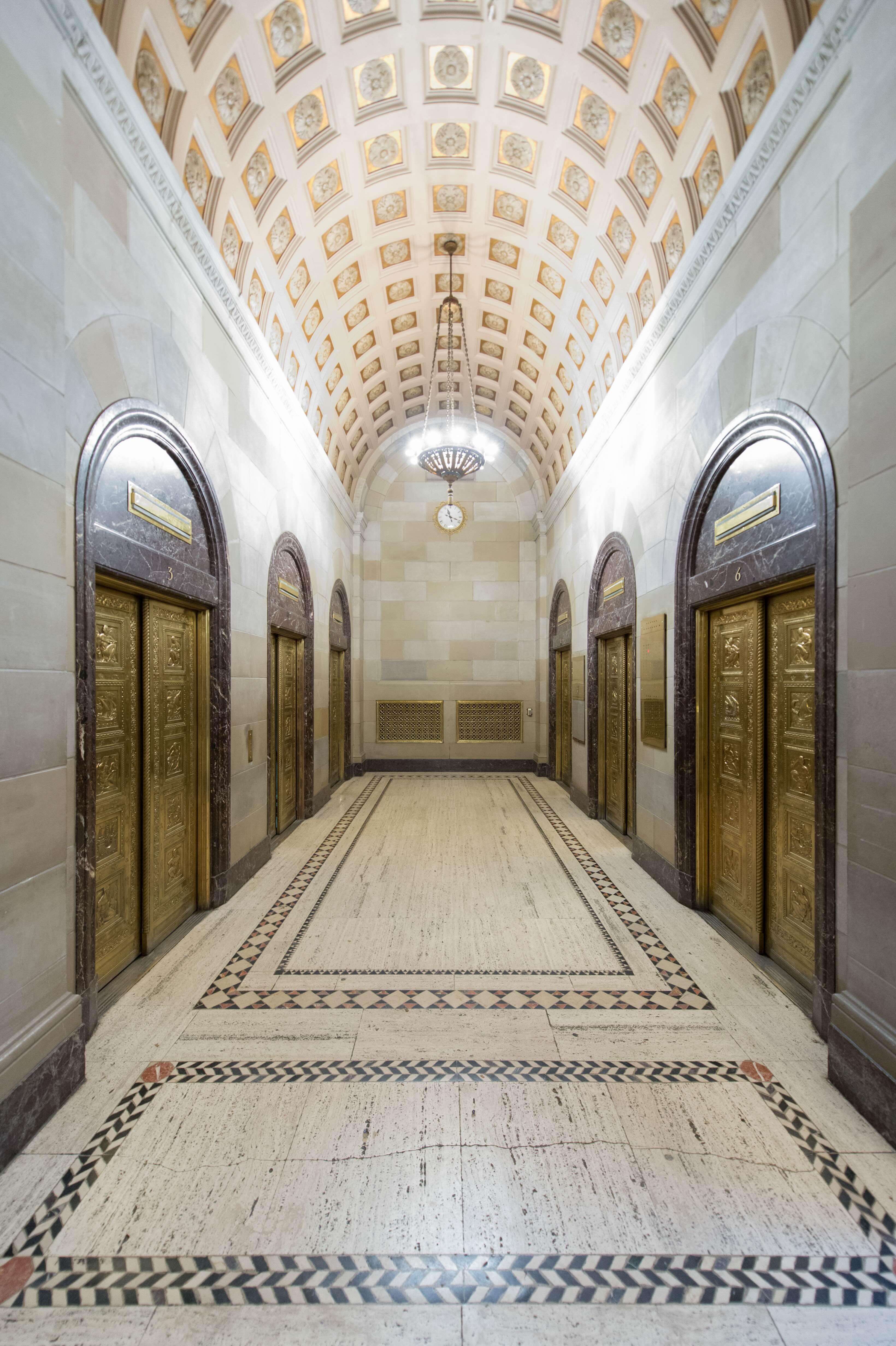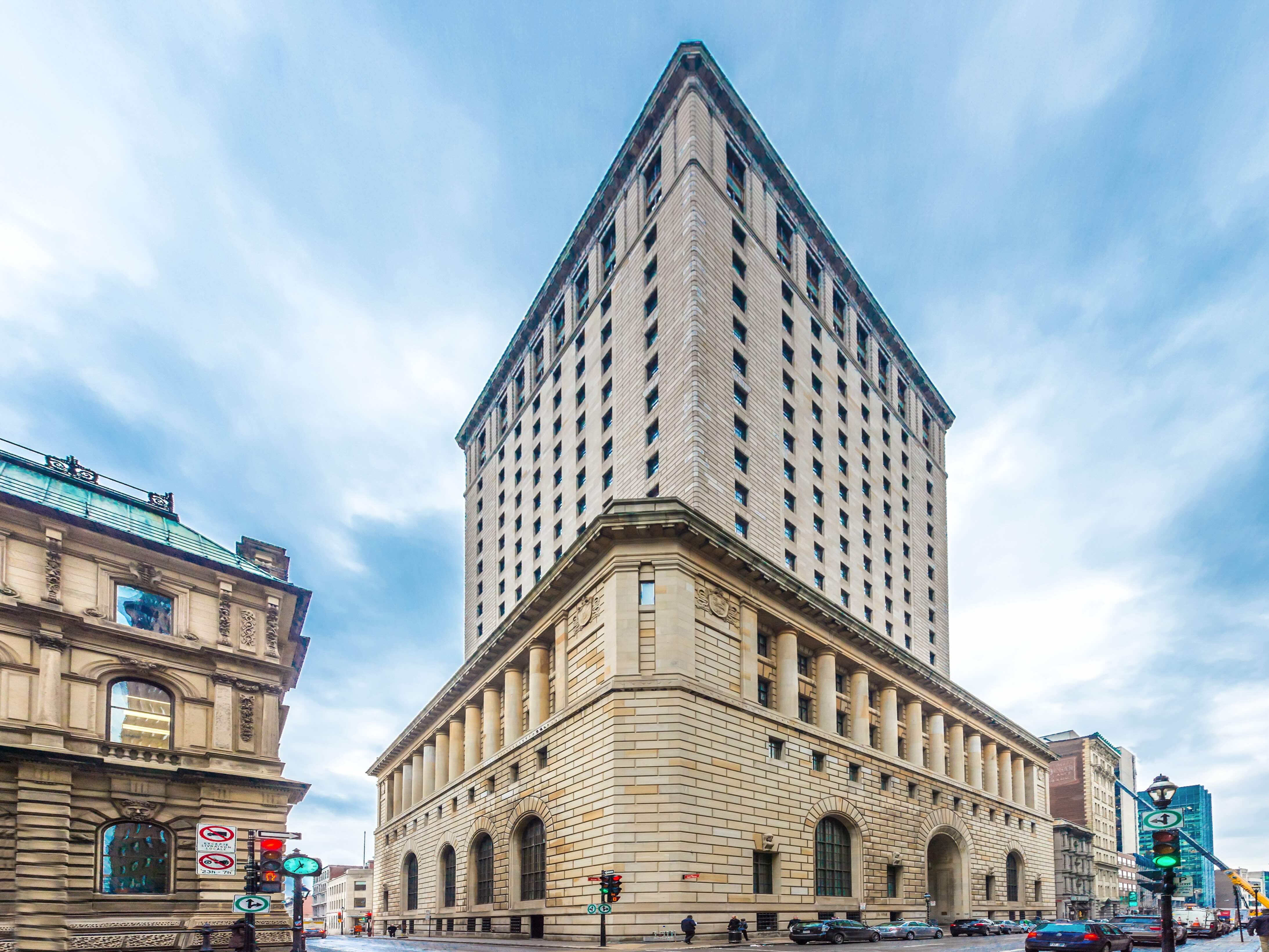 L’ancien siège social de la Banque Royale du Canada fût construit entre 1926 et 1928. L’édifice de 22 étages présente trois grandes divisions, soit l’imposant socle, la partie médiane de la tour et les pilastres au sommet. L’intérieur traduit les raffinements du détail classique romain de l’architecture de la renaissance italienne. Le hall principal, lieu remarquable où siégeait la banque, comporte des plafonds de 45 pieds et des planchers en travertin qui forme une mosaïque de marbre taillé à la main. Les anciens guichets de la banque sont encore en place aujourd’hui, servant au Crew Collective & Café qui a converti l’espace tout en conservant ses caractéristiques d’origine.