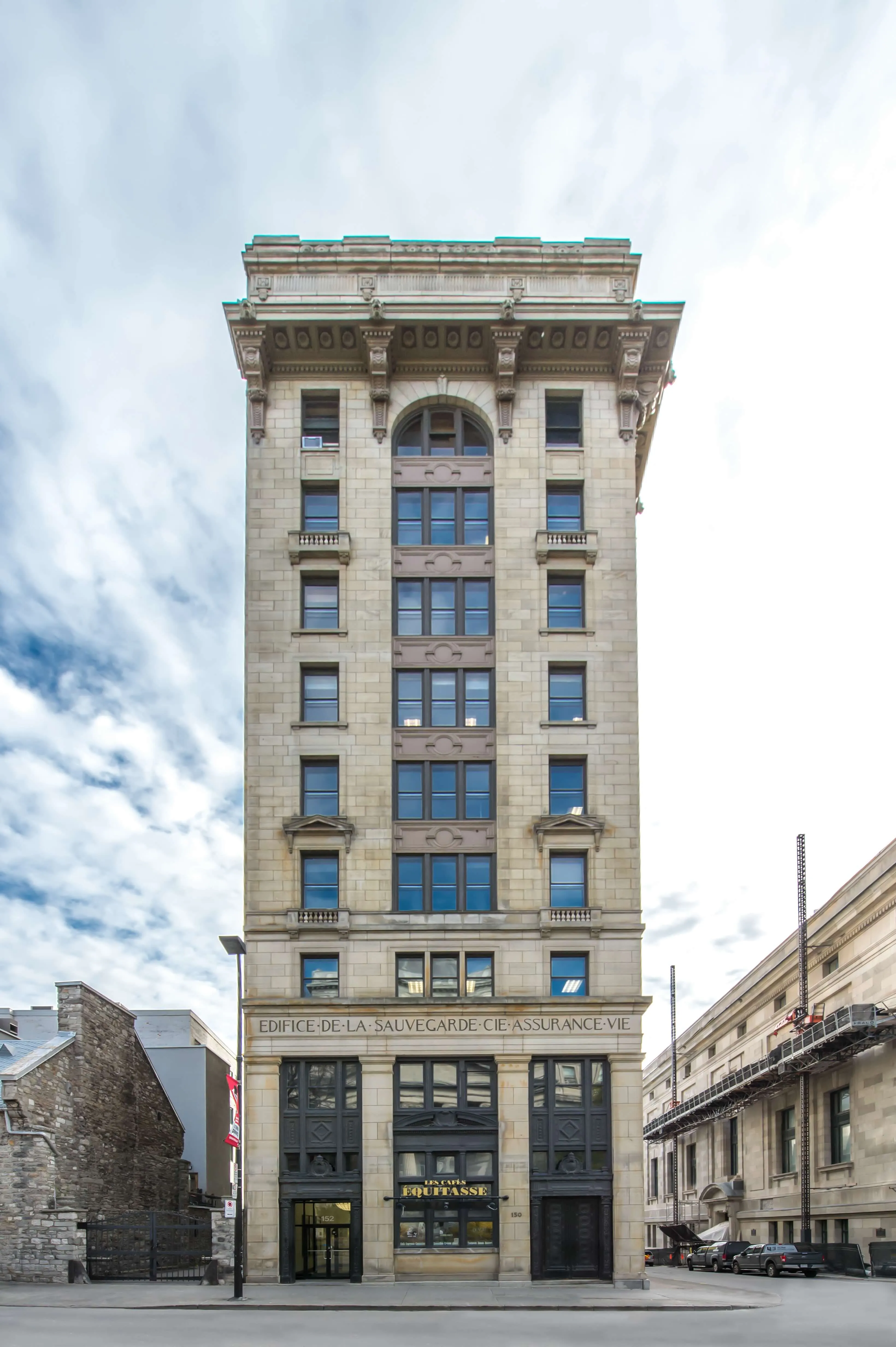 The building, constructed in 1913, was commissioned by the first French-Canadian insurance company, La Sauvegarde.