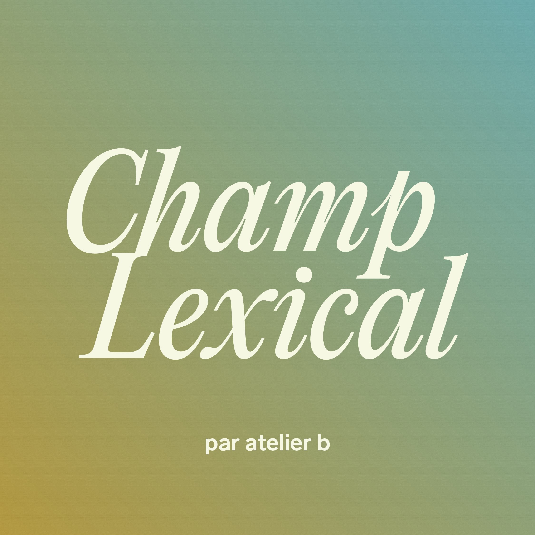Champ Lexical, c’est une série de rencontres où l'équipe d'atelier b discute d’enjeux sociaux reliés à la pratique de designer avec des personnes qui sont directement concernées par les sujets abordés. Librement inspiré par les discussions au sein de l’équipe, ce projet lancé en 2022 se veut un espace d’échange où il est possible de partager nos expériences et mettre doucement en place les changements qui vont de pair avec lesvaleurs d'atelier b